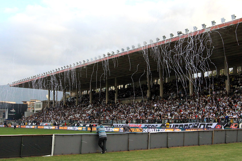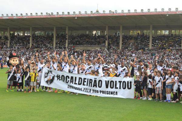 A carga de ingressos disponível para o confronto esgotou, e o público presente proporcionou ao Gigante da Colina um belo espetáculo. Com direito a queima de fogos, música nova e muita festa, os seguidores da cruz de malta marcaram presença no retorno do Vasco ao Caldeirão.