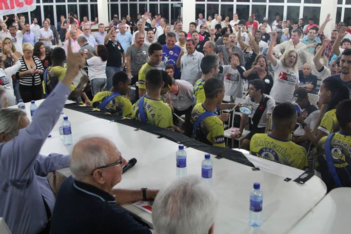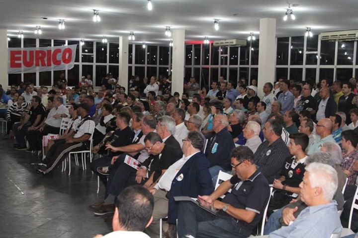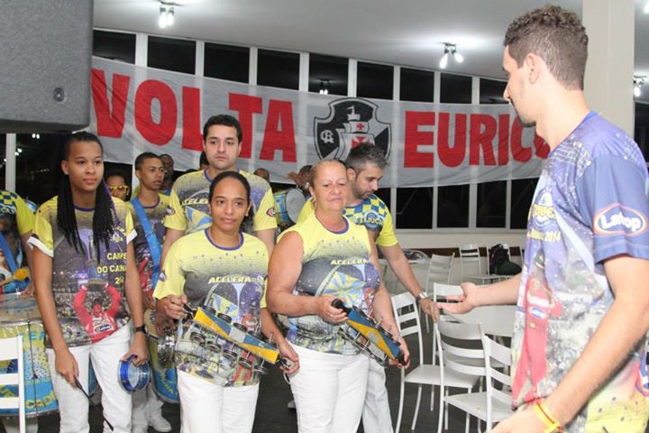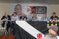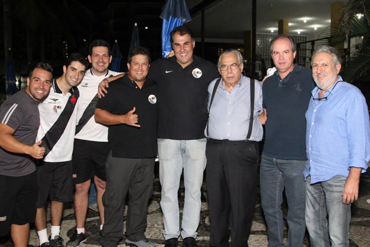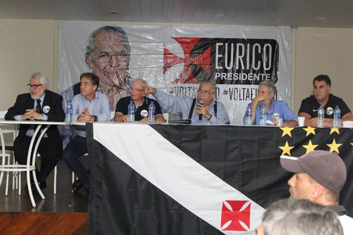 Fotos da reunião da chapa Volta Vasco! Volta Eurico! realizada na última 5ª-feira (24/07) no clube Caça e Pesca, na Barra da Tijuca, mostram o advogado Luiz Roberto Leven Siano, o ex-vice de futebol do Vasco José Luiz Moreira, o ex-vice jurídico do Vasco Paulo Reis, integrantes da bateria da escola de samba Unidos da Tijuca, o ex-presidente da TOV Amâncio Cezar, o secretário-executivo do Ministério do Esporte Luis Fernandes e o ex-jogador vascaíno Valdir Bigode.