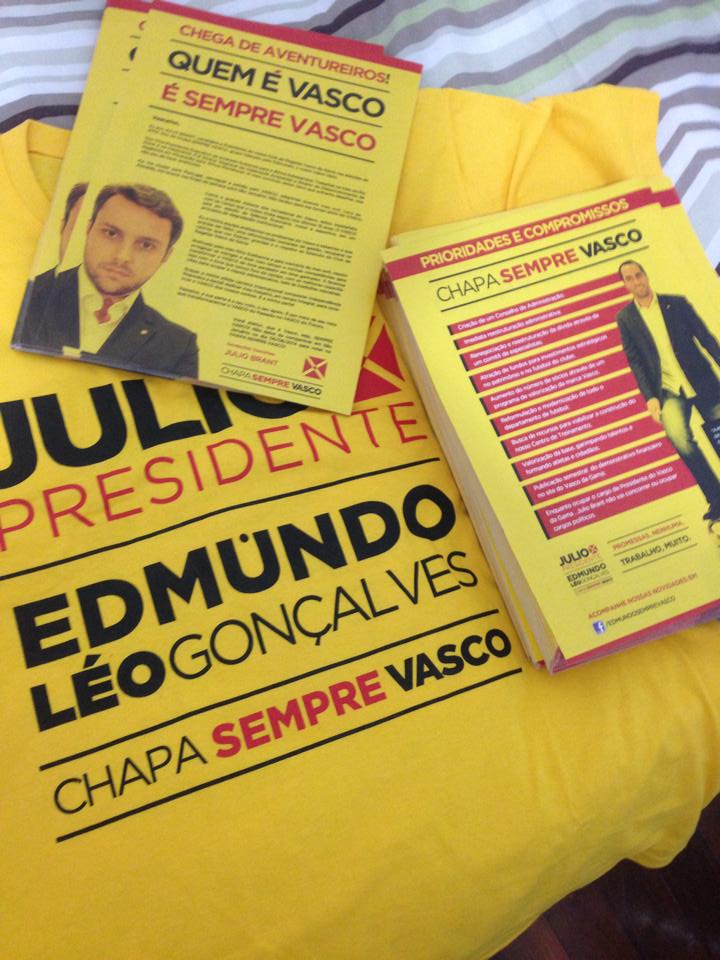No evento, realizado na Casa das Beiras, na Tijuca, Julio não teve a companhia do ídolo do clube Edmundo. O ex-jogador não participou do encontro e alegou compromissos profissionais. No salão, cerca de 400 pessoas, entre membros da Cruzada Vascaína e outros que apoiam o ex-jogador, que aparece em fotos ao lado de Brant na divulgação da campanha. Lançado de última hora, Brant tenta recuperar o tempo perdido. Na última semana, ele visitou casas portuguesas e foi a outros locais de tradicionais redutos lusitanos e vascaínos na zona norte do Rio.