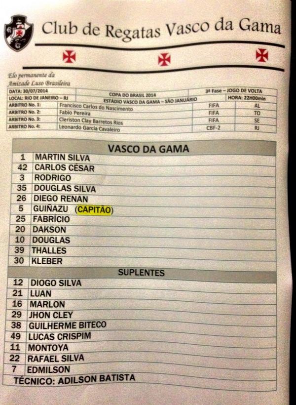 Confira escalação oficial do Vasco; Rodrigo volta ao time