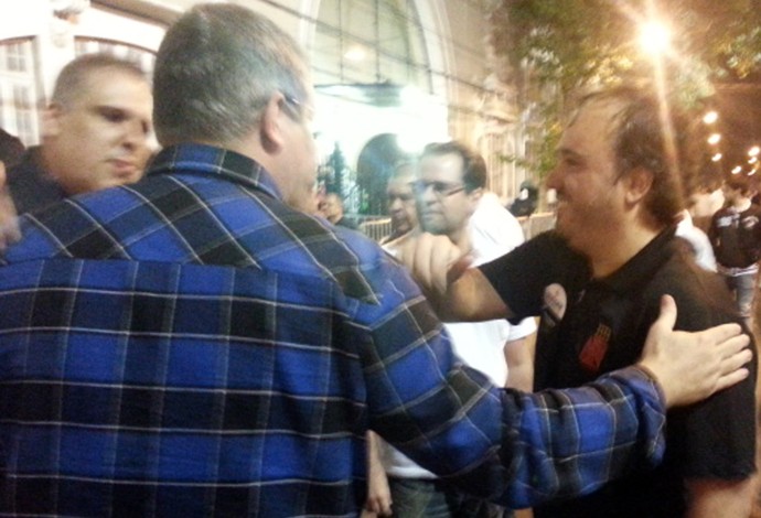 Novamente com carro de som, partidários de Eurico distribuíram cartas e adesivos do ex-presidente, que chegou ao jogo perto das 21h acompanhado de José Luis Moreira, ex-vice-presidente de futebol do clube. Do lado de fora, Roberto Monteiro e equipe - com a presença do candidato a vice-geral Fred Lopes, e o ex-vice-presidente de marketing Eduardo Machado - conversaram com associados entregaram folhetos de campanha do advogado. As camisas amarelas da chapa de Julio Brant também marcaram presença dentro e fora do estádio. Distribuídas gratuitamente, era possível notar uma boa quantidade de camisas nas sociais do clube e em frente ao portão principal, onde os grupos políticos dividiram as atenções dos associados e também da polícia, que acompanhava de perto as ações na porta de São Januário.