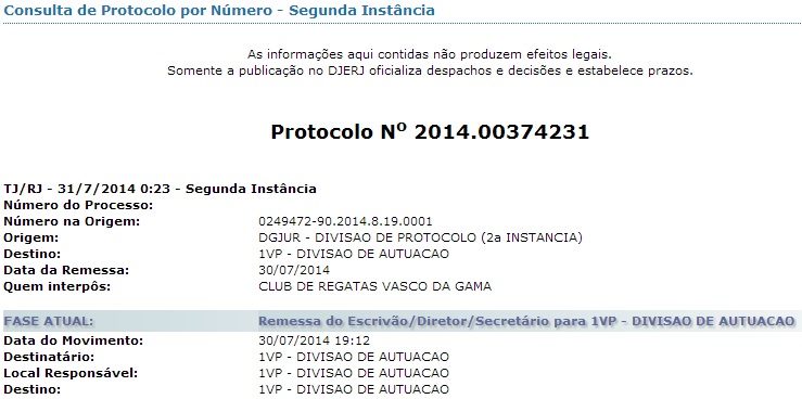 Programa Só dá Vasco @pgmsodavasco RECURSO JUDICIAL VISANDO ADIAMENTO DAS ELEIÇÕES JÁ FOI PROTOCOLADO: http://www4.tjrj.jus.br/ejud/ConsultarProtocolo.aspx?N=201400374231&O=3204