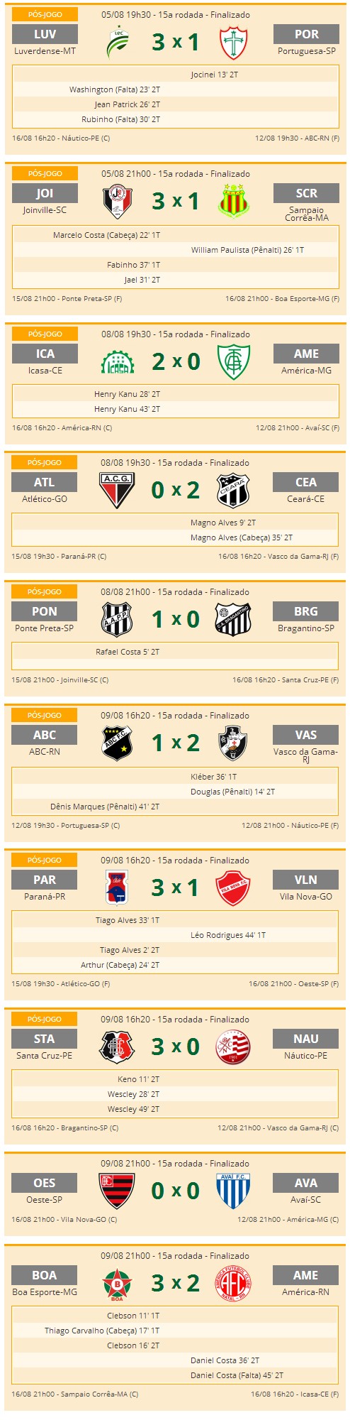 Fonte: NETVASCO (texto), Futebol Interior (resultados, autores dos gols), GloboEsporte.com (classificação), Superesportes (artilharia), CBF (próximos jogos)