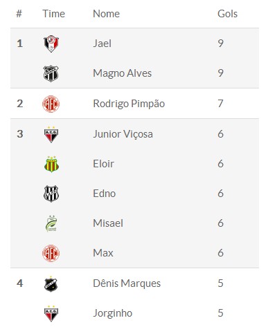 Com 3 gols marcados, Douglas é o artilheiro do Vasco na Série B. O goleador máximo da competição é Jael, do Joinville, e Magno Alves, do Ceará, com 9 gols cada.
