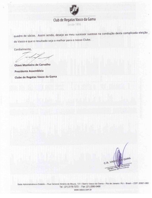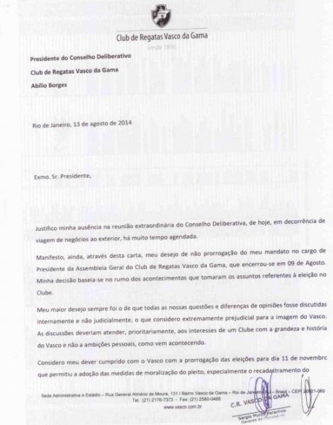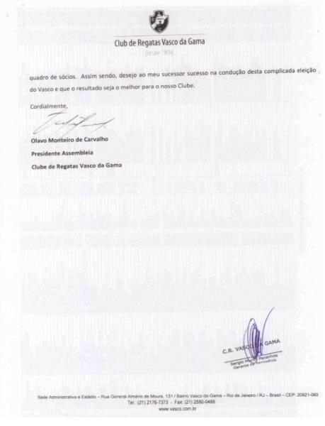 Confira a carta de renúncia de Olavo Monteiro de Carvalho da presidência da Assembleia Geral