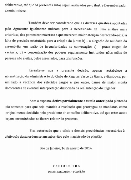Confira a decisão do desembargador que anulou decisão do Conselho Deliberativo