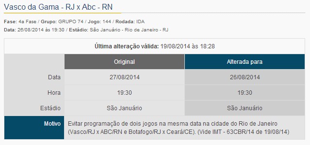 CBF antecipa Vasco x ABC para não coincidir com jogo do Botafogo