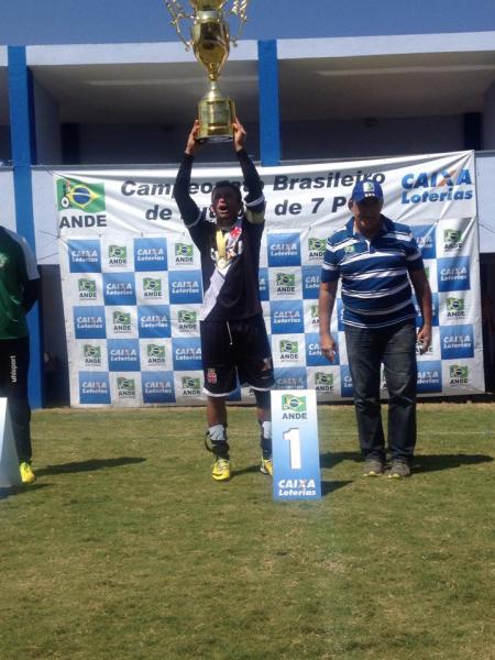 CAMPEÃO BRASILEIRO : A equipe do Vasco da Gama conquistou o inédito título de Campeão Brasileiro de futebol de 7 PC . O time de São Januário ganhou de virada pelo placar de 3x2 contra o último campeão brasileiro a equipe do Caira-MS . A equipe entrou em campo sonolenta e deixou a equipe sul matrogrossense colocar o placar em 2x0 , após o intervalo o técnico Rodrigo Rodrigo Terra fez algumas alterações e a equipe voltou com muita disposição , o time conseguiu fazer 3 gols ( 1 Biira Magalhaes e 2 Yuri Marcos) nos 20 minutos finais arrancando uma histórica virada na final e mostrando mais uma vez que o Vasco é o time da virada . O atleta Ubirajara Magalhães recebeu o troféu de atleta revelação .