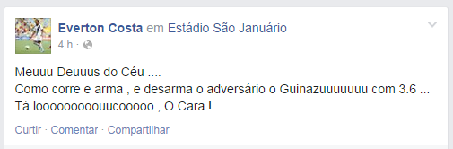 No Facebook, Everton Costa elogia Guiñazu: 'Como corre, arma e desarma'
