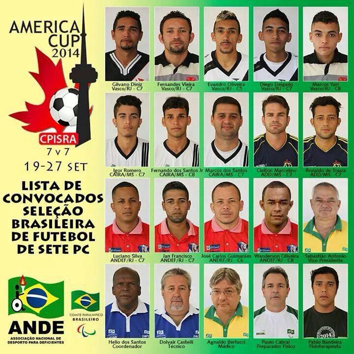 Atletas vascaínos na seleção brasileira de futebol de 7 : Depois de conquistar o campeonato brasileiro , 5 jogadoresdo Vasco da Gama são convocados para defender o Brasil na Copa América de futebol de 7 que será disputada entre os dias 18 a 27 de setembro no Canadá . Os atletas convocados foram Jean Diniz , Yuri Marcos , Evandro Oliveira , Fernandes Garrincha e Diego Delgado