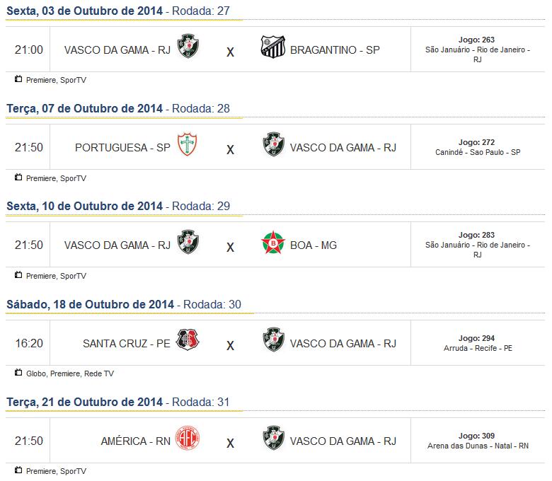 CBF divulga detalhamento das rodadas 27 a 31 da Série B; veja os jogos do Vasco