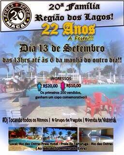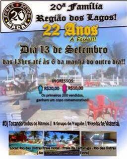 A 20ª Família vem comunicar a todos os membros e simpatizantes, que vem aí dia 13 de Setembro, nossa Festa, nosso evento de 22 anos de Amor e Tradição em Macaé e Região dos Lagos.
