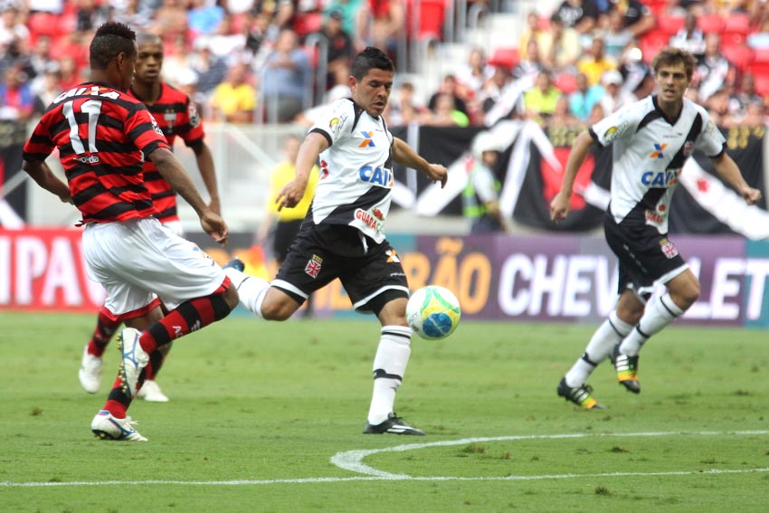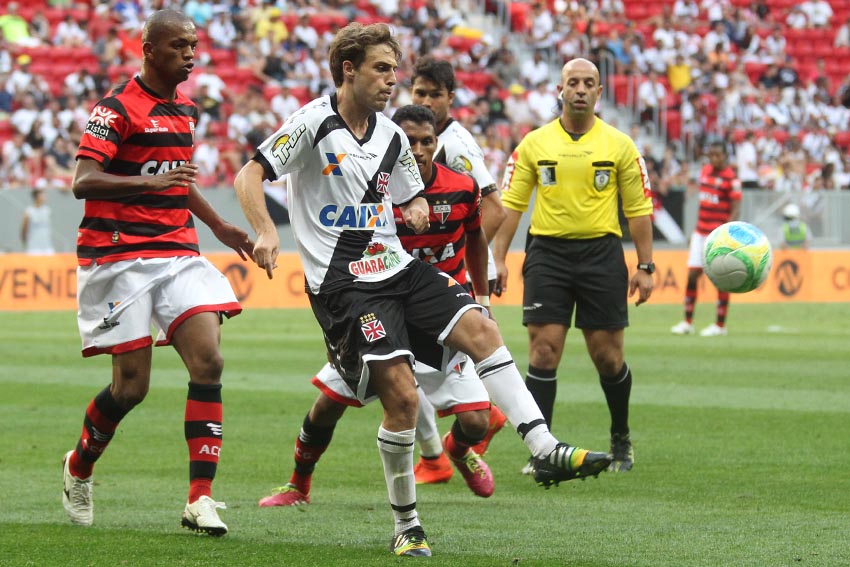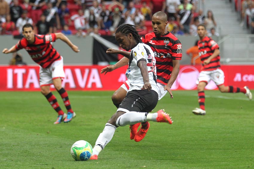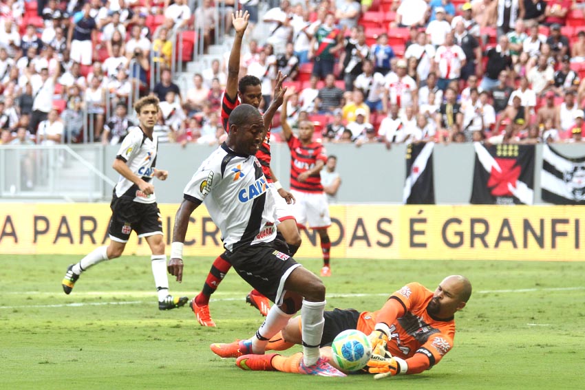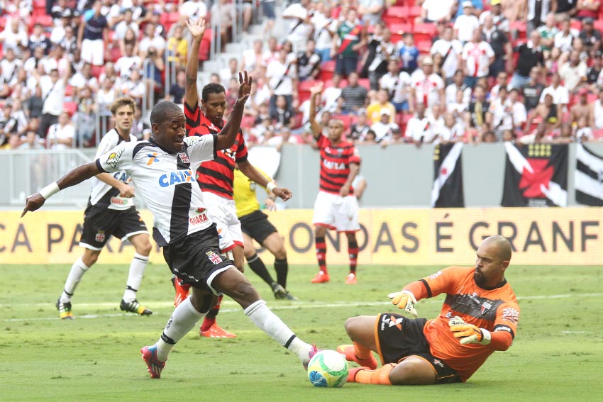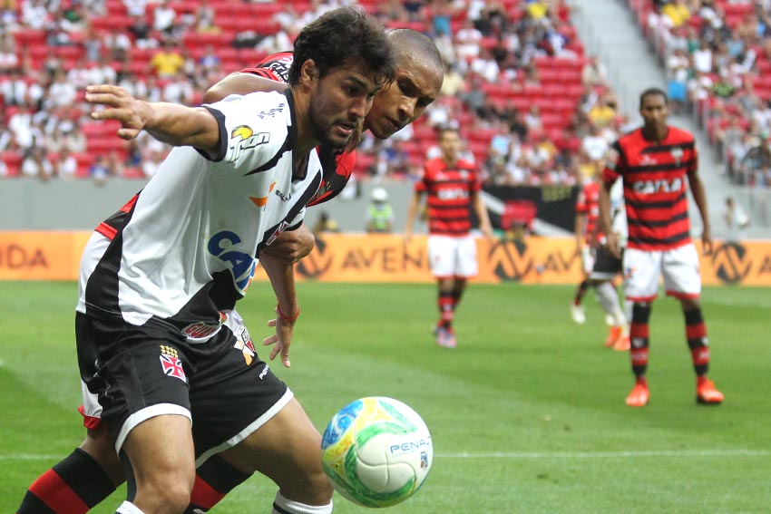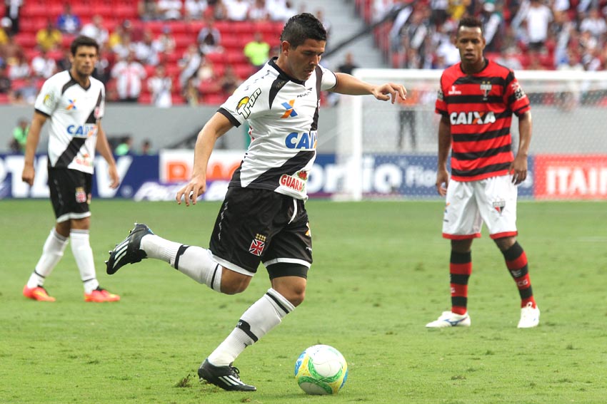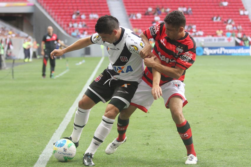 A partida caiu de ritmo. O time de São Januário não conseguia mais se aproximar da área do Atlético Goianiense, enquanto a equipe de Goiás mantinha o padrão cauteloso e se preocupava em impedir que o Vasco chegasse com perigo na sua área.