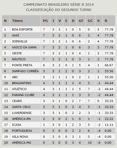 Vasco tem a 4ª melhor campanha do returno da Série B