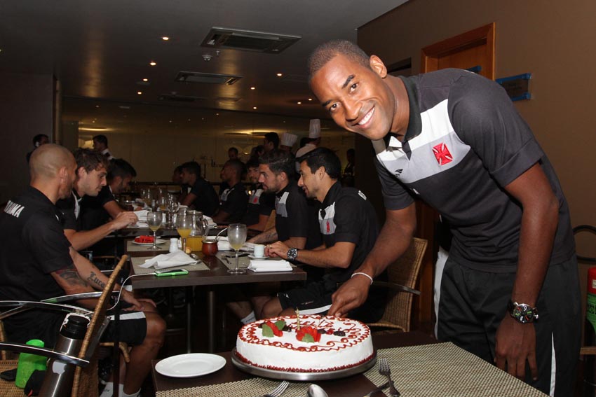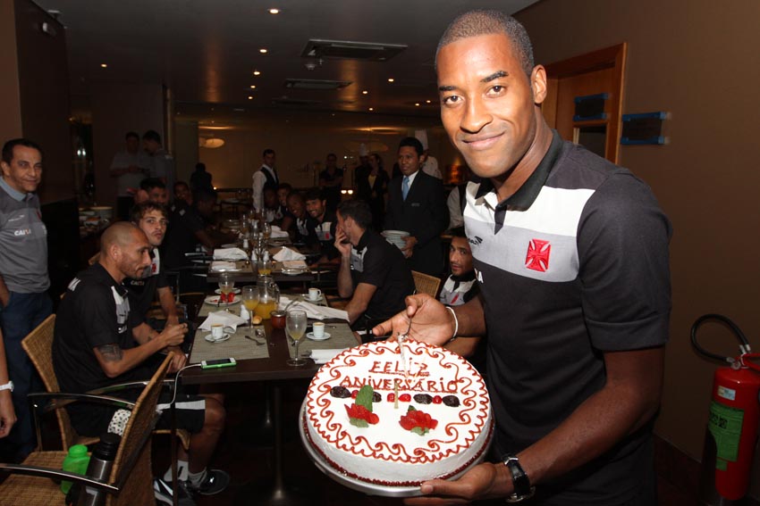 Sorridente, o jogador agradeceu aos companheiros e presentou o técnico Joel Santana com o primeiro pedaço do bolo. O comandante vascaíno também fez questão de agradecer a parceria e também deu o seu parabéns especial ao atacante Edmílson, que voltou a marcar pelo Gigante da Colina no último sábado (13), contra o Atlético-GO.