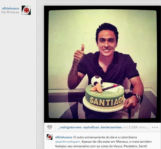 oficialvasco O outro aniversariante do dia é o colombiano @santimontoyam. Apesar de não estar em Manaus, o meia também festejou seu aniversário com as cores do Vasco. Parabéns, Santi!