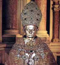 esde 1608, os restos mortais encontram-se na Capela do Tesouro, em cumprimento da promessa feita pelos napolitanos em 1527, por ocasião de uma peste que assolou a região, mas Nápoles foi preservada pelo Santo. Também em duas outras ocasiões San Gennaro protegeu a cidade : na cólera que assolou a região em 1884 e na erupção do Vesúvio em 1631.