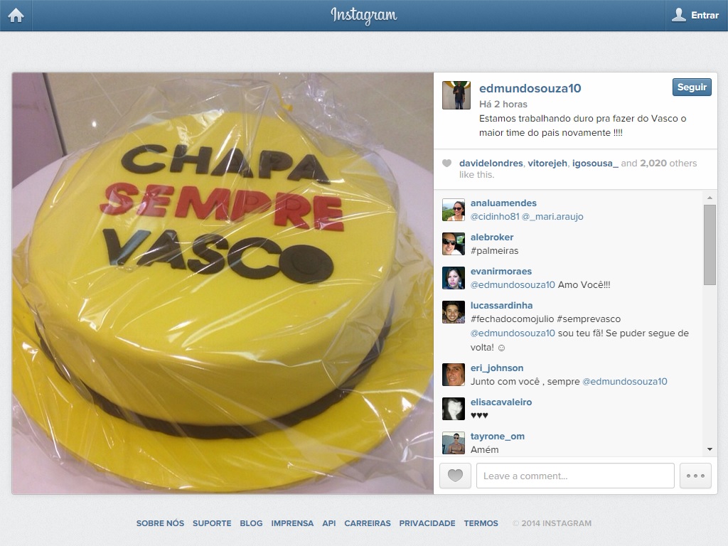 Edmundo, via Instagram: 'Estamos trabalhando duro pra fazer do Vasco o maior time do pais novamente'