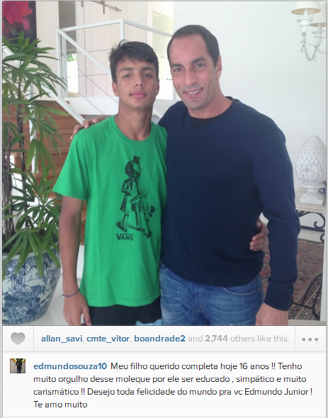 Meu filho querido completa hoje 16 anos !! Tenho muito orgulho desse moleque por ele ser educado , simpático e muito carismático !! Desejo toda felicidade do mundo pra vc Edmundo Junior ! Te amo muito