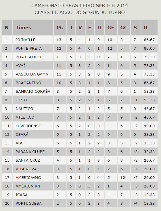 A vitória sobre o Náutico por 2 a 1 no último sábado não foi suficiente para tirar o Vasco da 5ª colocação do returno da Série B, mas o Gigante da Colina está só 2 pontos atrás do líder Joinville.