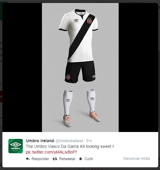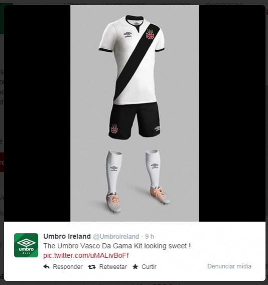 A imagem abaixo foi publicada pelo Twitter @UmbroIreland na tarde desta 4ª-feira (24/09). Trata-se do Twitter da versão irlandesa da Umbro, a Umbro Ireland. No entanto, a imagem divulgada foi, na verdade, feita por torcedores, tendo sido veiculada no Fórum NETVASCO em julho deste ano.
