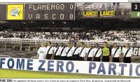 No dia 12/10 o Vasco jogou contra o Flamengo estampando na manga a logo do Fome Zero:
