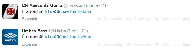 Fonte: Twitter oficial do Vasco, Twitter da Umbro