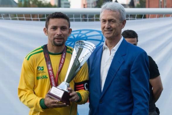 O capitão vascaino e da seleção brasileira Fernandes Garrincha levantou o troféu de campeão das Américas . O atleta do Vasco da Gama em menos de 1 mês foi o capitão do inédito título de campeão brasileiro pela equipe de São Januário e voltou a conquistar mais um título como capitão pela seleção brasileira .