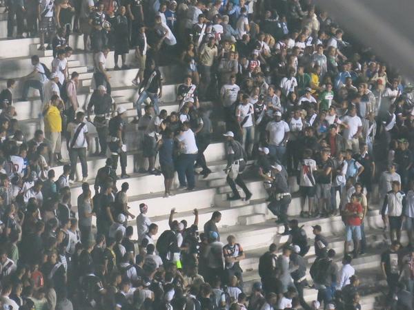 Edgard Maciel de Sá @edmacieldesa Confusão na arquibancada de São Januário após o segundo gol do Bragantino. PM precisou intervir #trsaojanu