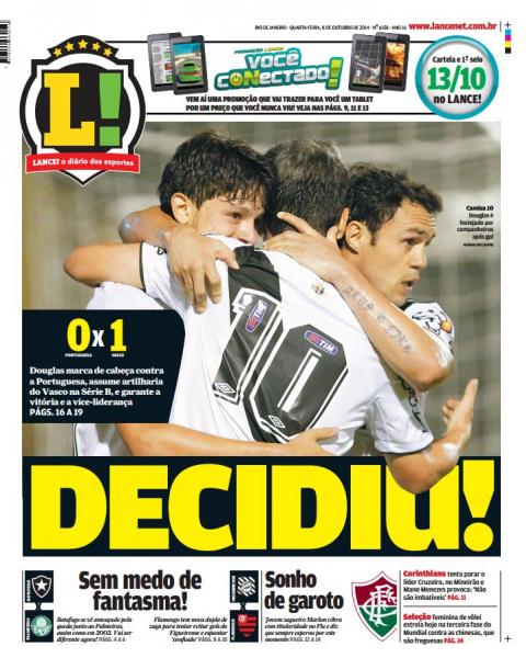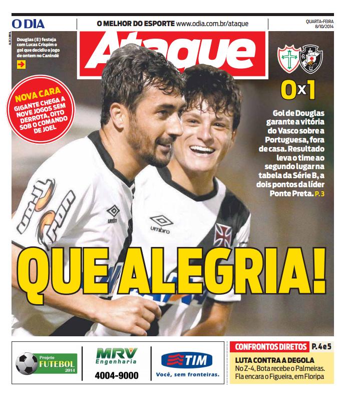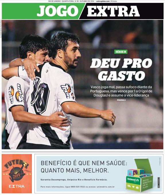 Veja como a imprensa carioca destacou a vitória do Vasco sobre a Portuguesa