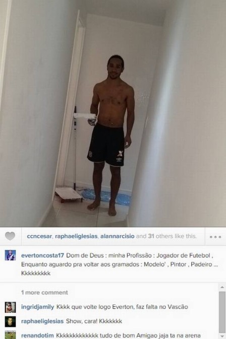 “Dom de Deus : minha Profissão : Jogador de Futebol , Enquanto aguardo pra voltar aos gramados : Modelo' , Pintor , Padeiro ... Kkkkkk”, postou o jogador.