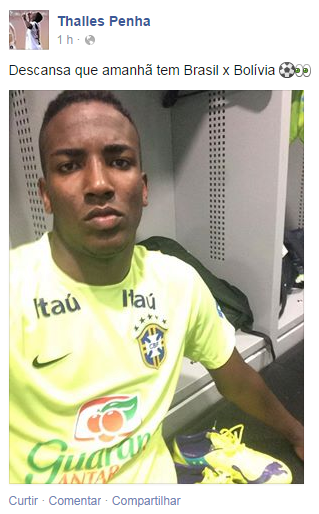 Thalles, no Facebook: 'Descansa que amanhã tem Brasil x Bolívia'