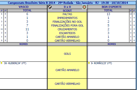 Confira as estatísticas do 1º tempo de Vasco 0 x 0 Boa