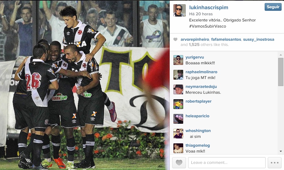 Fonte: Instagrams dos jogadores Lucas Crispim e Diego Renan