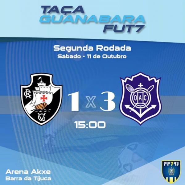 Na tarde deste sábado (11), em jogo disputado na Arena Akxe, na Barra da Tijuca, pela segunda rodada da Taça Guanabara de Futebol 7, o Olaria venceu o Vasco por 3 a 1 e conquistou sua primeira vitória no campeonato, após perder para o Bangu na primeira rodada. Luiz, Aroldo e George marcaram para o Azulão da Rua Bariri, enquanto Marquinhos descontou para o Cruz-Maltino, que perdeu sua primeira partida na competição após derrotar o Belford Roxo na rodada de abertura do Grupo B.