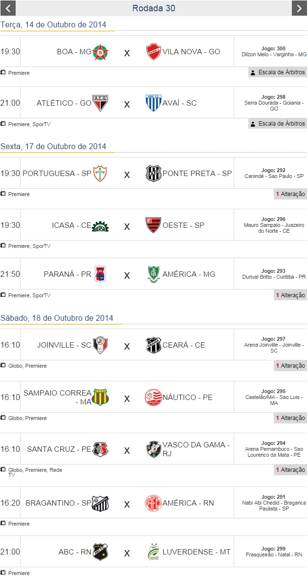 Santa Cruz e Bragantino têm um jogo a menos do que os demais participantes. O Icasa foi excluído da Série B pelo STJD por ter acionado a Justiça Comum, mas segue disputando a competição enquanto o caso não é julgado no Pleno. O América-MG perdeu 6 pontos devido à escalação de um jogador irregular.