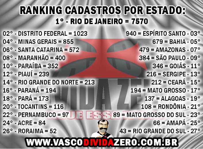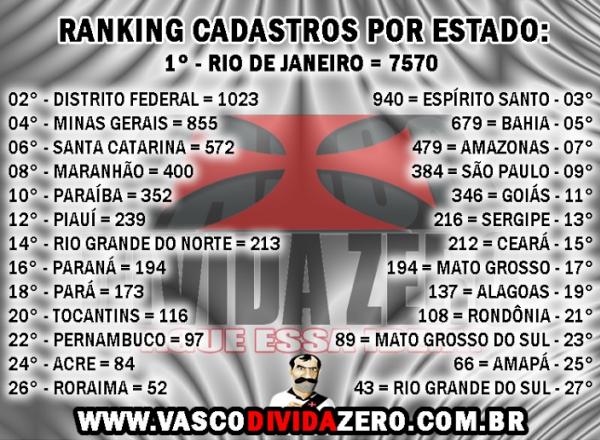 RJ, DF, ES, MG, BA e SC são os estados com mais cadastrados no Vasco Dívida Zero; confira o ranking