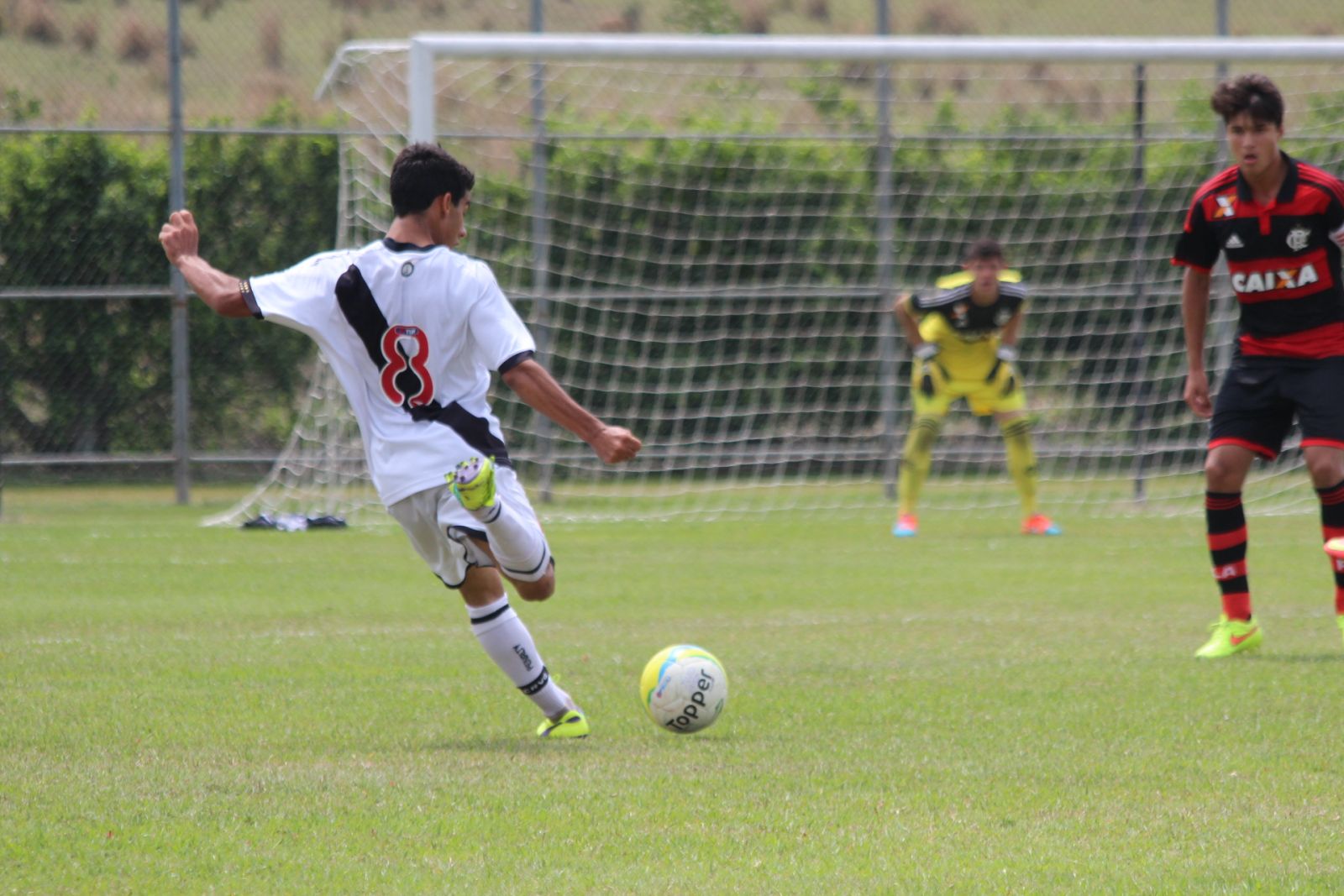 Realizado na última quarta-feira (15/10), o clássico contra o Flamengo não terminou da maneira que a equipe sub-15 do Vasco esperava. Após empate em 1 a 1 no tempo normal, o clube da Gávea foi feliz nas cobranças de pênalti e venceu pelo placar de 5 a 4. O gol cruz-maltino no duelo foi anotado pelo atacante Jackson Neneca, na segunda metade da etapa final.