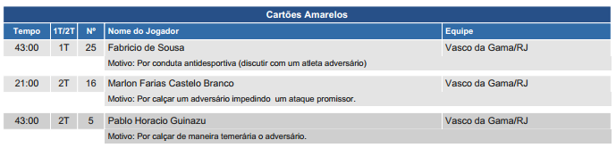 Na súmula divulgada no site da CBF, Vuaden justificou as infrações cometidas pelos atletas que originaram as marcações. Veja abaixo: