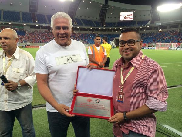 Augusto César Gomes @augustogomes Roberto Dinamite, presidente do Vasco, recebe placa de homenagem do América-RN #trdunas