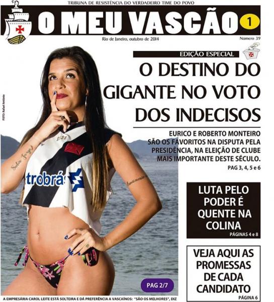 A edição número 39 do jornal O MEU VASCÃO (outubro/2014) entra em cartaz nas bancas do Rio de Janeiro, municípios da Baixada, Niterói e São Gonçalo a partir desta sexta-feira. Tendo como foco principal a eleição de 11 de novembro, continua sendo o principal jornal brasileiro independente dedicado a um único clube, em tiragem (14.000) e circulação.