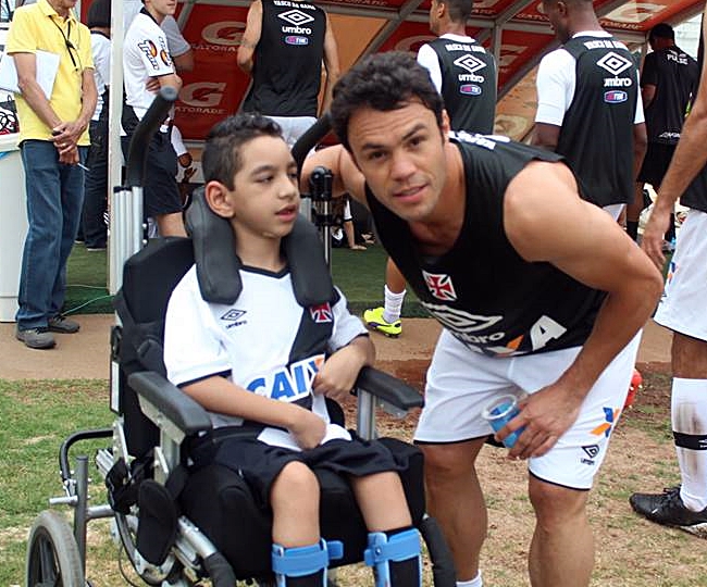 - Estávamos bastante ansiosos para ver a reação dele, e ele ficou radiante. Quando nós chegamos e ele viu o campo foi uma emoção, ele queria entrar pra jogar porque disse que agora era "zogador do Vaco". Quando ele sentiu toda a energia dos torcedores entrou no clima também e curtiu bastante o jogo, foi um momento muito gratificante - disse Nínive.
