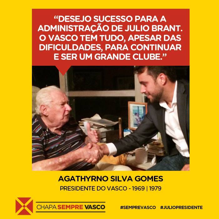 Quem É Vasco é SEMPRE VASCO Candidato Julio Brant recebe apoio de Agathyrno Silva Gomes, Presidente do Vasco da Gama entre 1969 e 1979. #SempreVasco #JulioPresidente