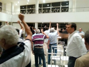 A diretoria pediu aprovação das contas aos conselheiros após explanação do diretor financeiro Jorge Almeida. O executivo mostrou uma apresentação e atestou que dos 10 itens pedidos pelo Conselho Fiscal, todos estavam sendo sanados. Eurico pediu a palavra após os fiscais do Conselho se posicionarem a favor da aprovação, com uma ressalva apenas: de intimação à empresa Jeff Sports, que administrava "O Vasco é meu". Indicada pelo ex-presidente da Assembleia Geral Olavo Monteiro de Carvalho, que hoje apoia Julio Brant, o assunto virou motivo para ataques de todos os lados na sessão da Lagoa.