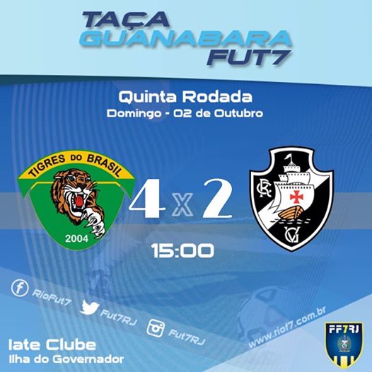 Continuando a quinta rodada, abrindo os jogos de domingo, Tigres vence o Vasco que perde a terceira colocação do Grupo B Gols do Tigres: Jefferson (2), Rodolfo e Peq Gols do Vasco: Marcos Aurélio e Ricardo Martins.