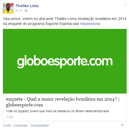 Thalles pede votos em enquete de revelação do futebol brasileiro em 2014