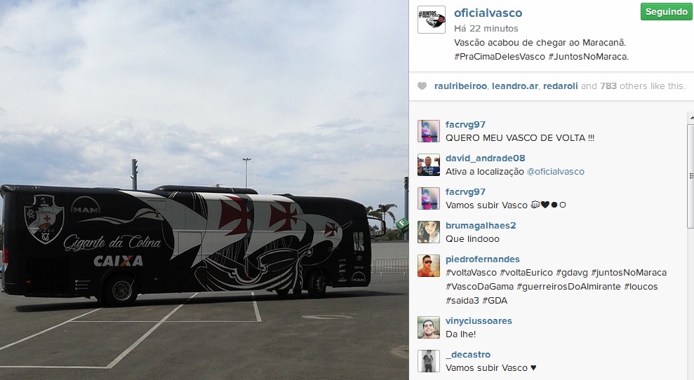 CR Vasco da Gama @crvascodagama Vascão acabou de chegar ao Maracanã. #PraCimaDelesVasco #JuntosNoMaraca. http://instagram.com/p/vJVC4Dl6GC/
