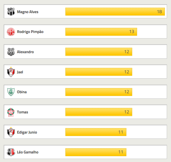 Com 9 gols marcados, Douglas é o artilheiro do Vasco na Série B. O goleador máximo da competição é Magno Alves, do Ceará, com 18 gols.