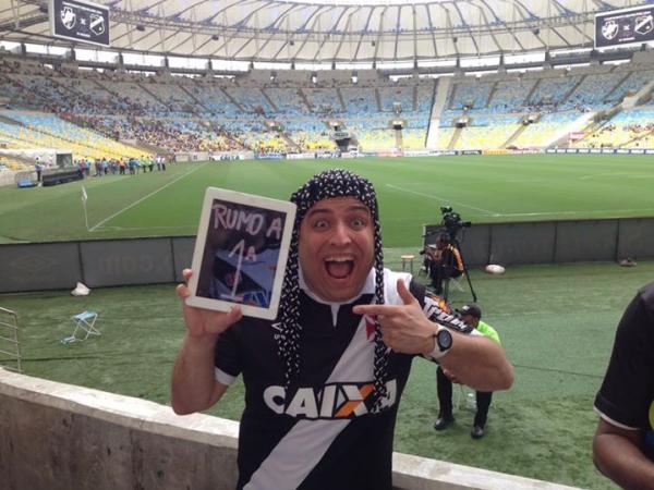Futmesa: Vascaínos campeões do mundo participam de programa de rádio e tiram foto com o Homem Piruca