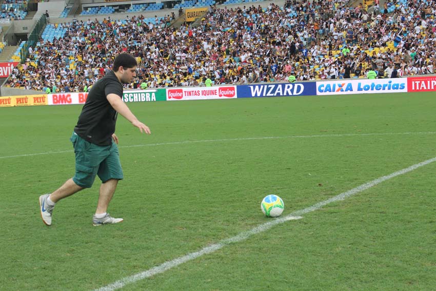 Se acompanhar uma partida no Maracanã já é especial para a maioria dos amantes de futebol, imagina então pisar no gramado do "Maior do Mundo" e bater uma bolinha?! Na tarde deste sábado (08/11), durante o intervalo do jogo entre Vasco e ABC-RN, alguns felizardos, todos eles sócios do clube, viveram um momento que dificilmente irão esquecer. Os associados Felippe Pinto Ferreira de Souza, Luis Fernando de Freitas da Fonseca, Hugo Cassibi Sillero, José Angelo Mazzillo Netto e Francisco Sampaio participaram do "Desafio do Sócio".